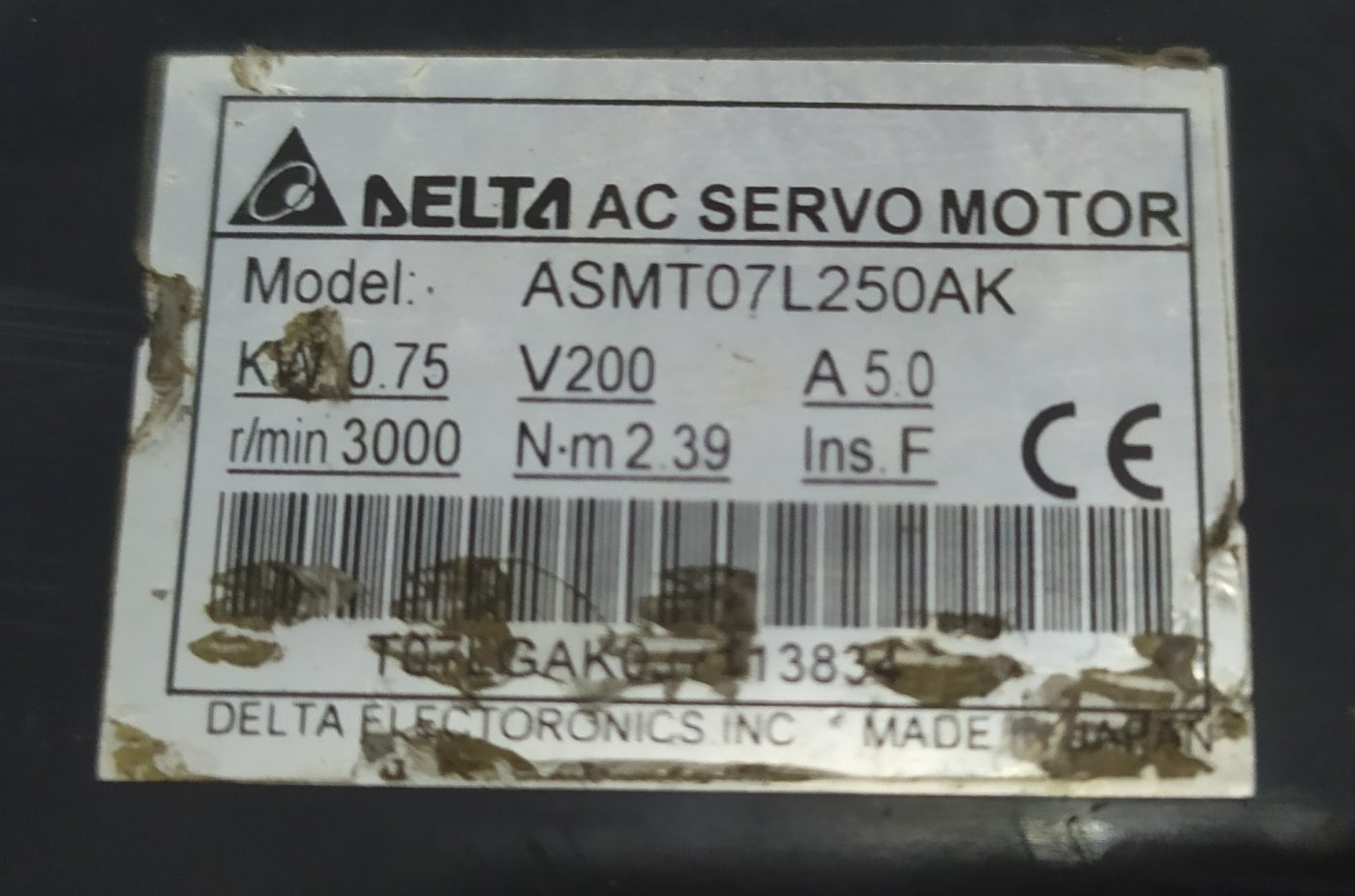 DELTA AC SERVO MOTOR ASMT07L250AK