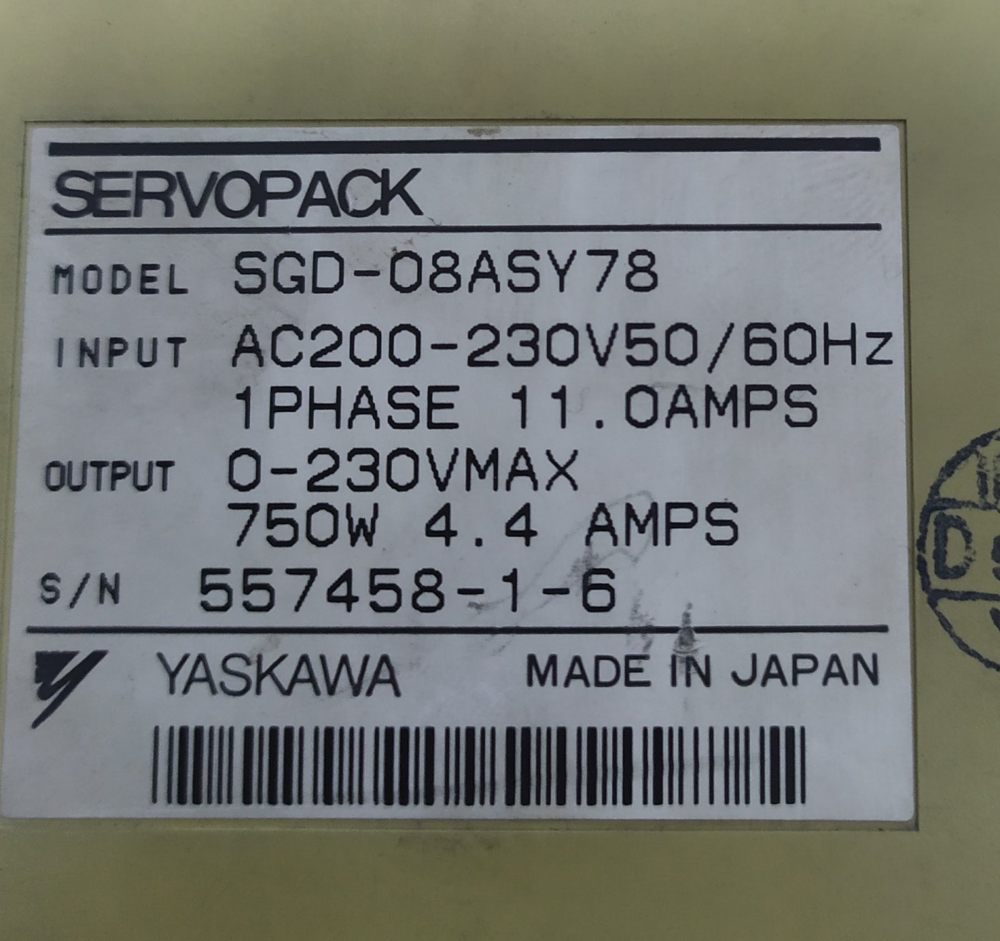 YASKAWA SGD-08ASY78