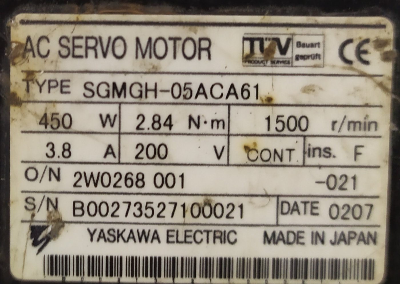 YASKAWA SGMGH-05ACA61