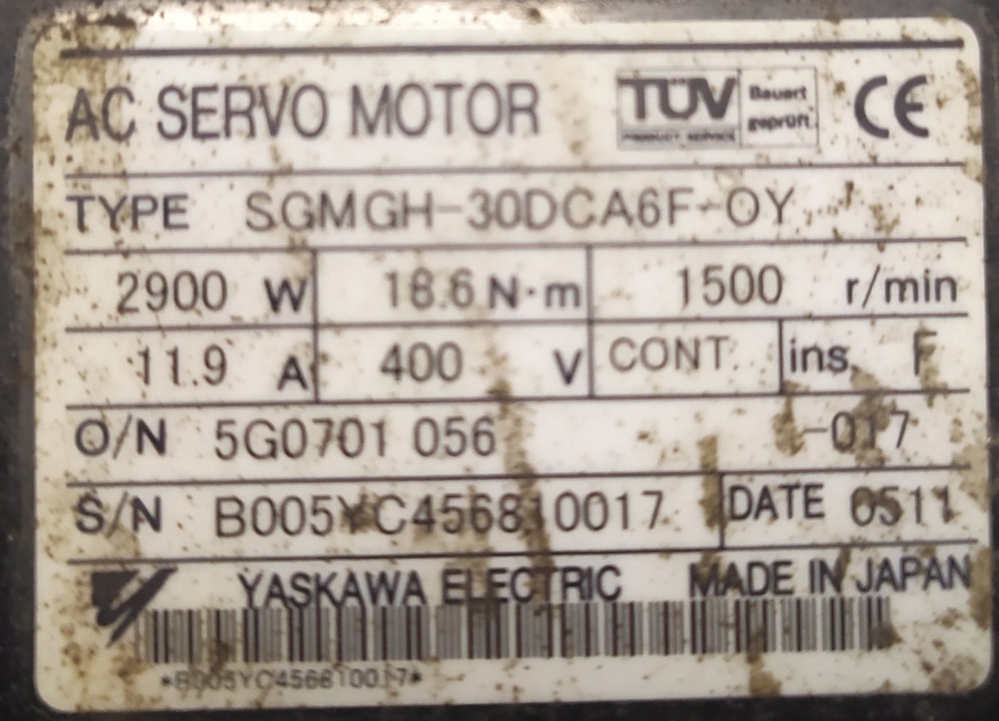 YASKAWA SGMGH-30DCA6F-OY