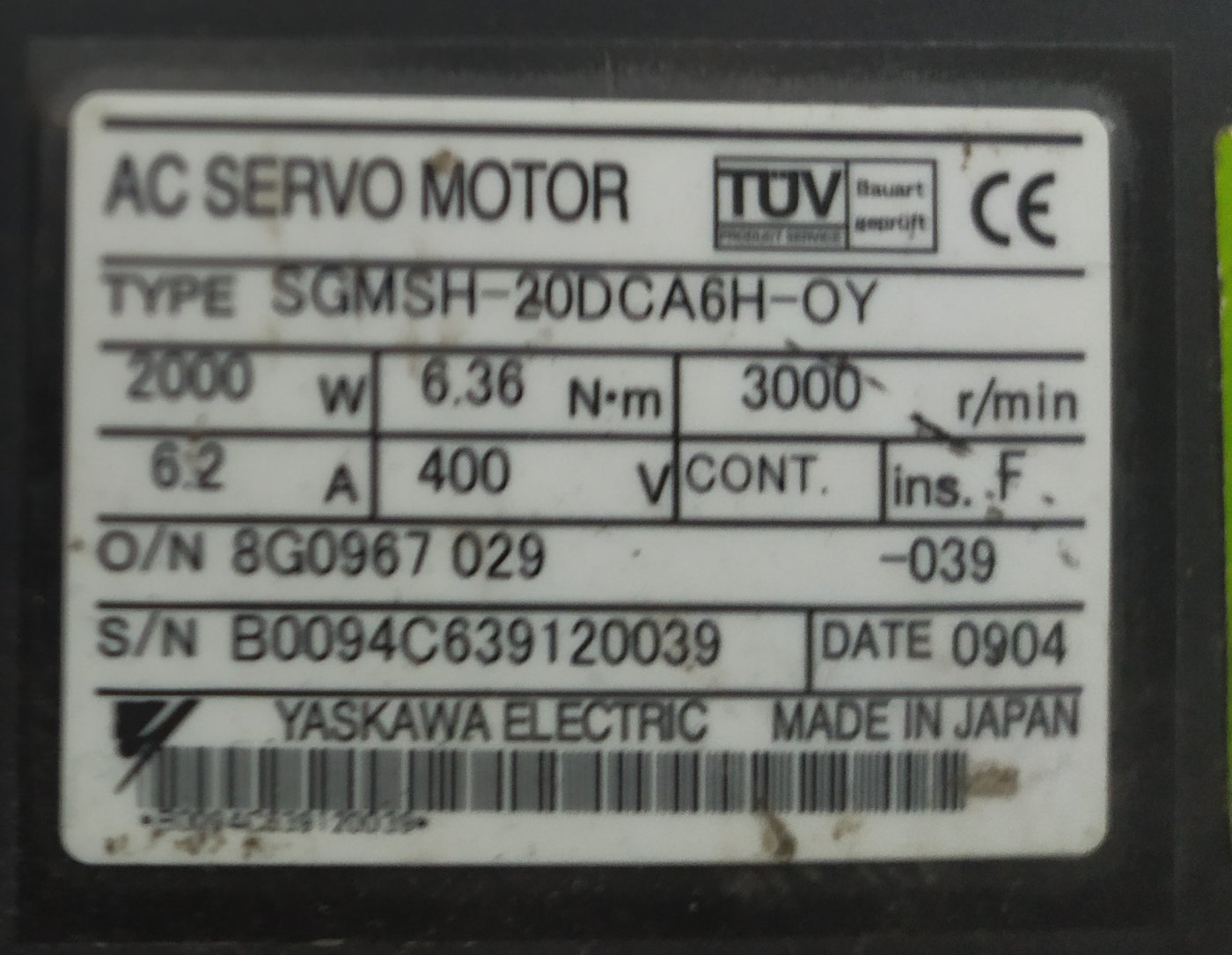 YASKAWA SGMSH-20DCA6H-OY